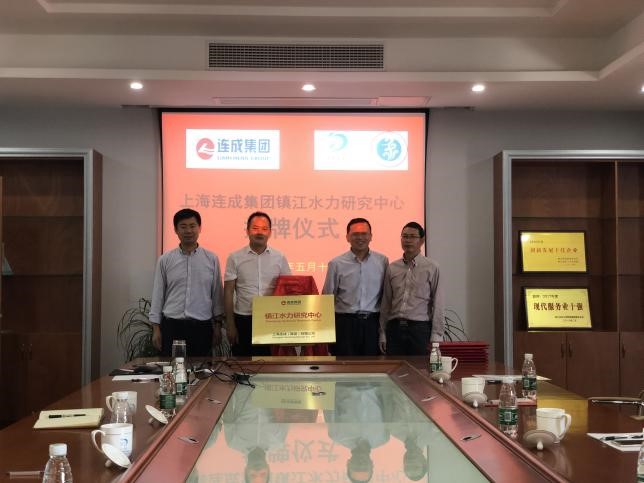 接着,袁建平主任与上海连成(集团)有限公司总工程师宋青松共同为上海连成镇江水力研究中心揭牌。