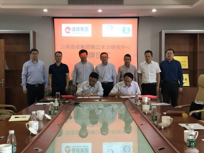 5月18日上午,上海连成镇江水力研究中心在禁忌书屋 镇江流体工程装备技术研究院揭牌成立。上海连成(集团)有限公司总工程师宋青松、研究所所长李震昙、总工办主任梁志灵、设计师陆霞杰、镇江水力中心负责人施远林,禁忌书屋 主任袁建平、书记张德胜、副主任王勇、办公室主任裴吉、禁忌书屋 镇江流体工程装备技术研究院副院长孙兵、赵斌娟教授、潘中永副教授等参加仪式。