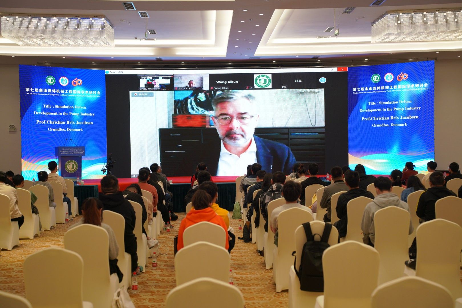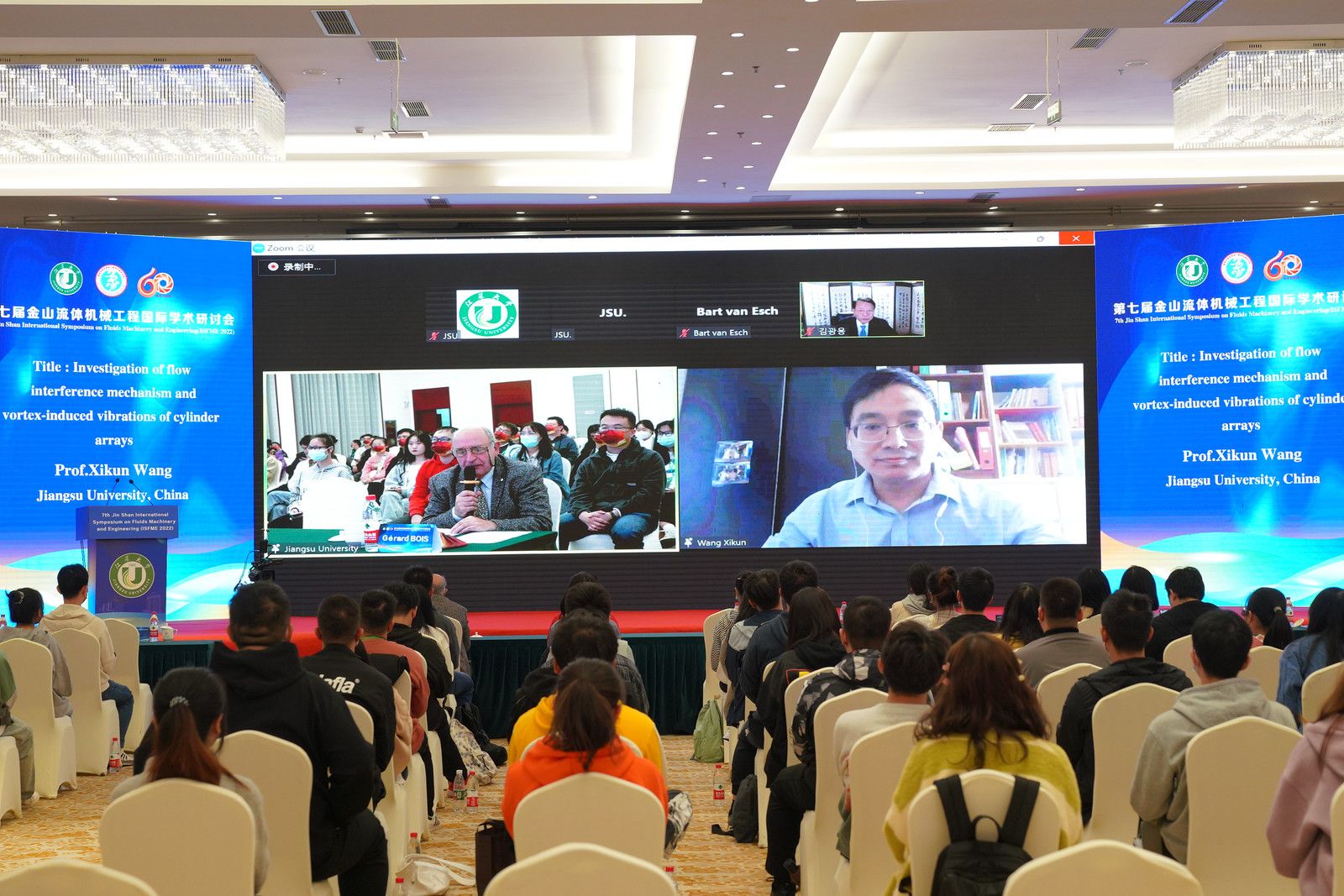 学术讲座环节由法国科学院骑士勋章获得者Gerard Bois教授主持。韩国仁荷大学Kwang-Yong Kim教授、禁忌书屋 王希坤教授、荷兰埃因霍温理工大学B.P.M. Van Esch教授、丹麦格兰富公司仿真技术总监Christian Brix Jacobsen教授,分别以几何效应对蜗壳式离心泵内部不稳定流动特性的影响、圆柱绕流的流动干涉机理及涡激振动研究、水泵站及水轮机过鱼损伤评估研究、水泵行业的仿真驱动发展为主题进行了精彩的专题报告。