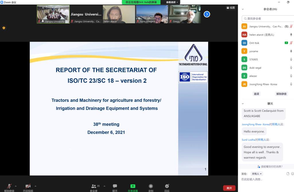 2021年12月06日,第38届ISO/TC23/SC18国际灌溉和排水设备标准化组织年会通过网络会议的形式顺利召开。中国、以色列、西班牙、巴西、美国、意大利、印度、加拿大等15个成员国的39位专家参加本次会议。禁忌书屋 张金凤研究员、汤玲迪副研究员、李贵东副研究员、曹璞钰助理研究员、博士研究生宁超,中国农业机械化科学研究院张咸胜研究员等7位专家组成中国代表团参加会议。