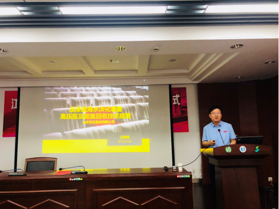 After the ceremony, Prof. Wang Jiabin gave a special report entitled “Application of Reverse Osmosis Seawater Desalination Unit High-pressure Pump and Energy Recovery Technology”. He detailed domestic series of high-efficiency reverse osmosis seawater desalination high-pressure pump products and industrialization. It applies the latest technology of national S&T support topics, combines with the new development trend of the current world's seawater desalination high-pressure pump manufacturing technology. And according to the performance requirements in actual use, through the overall structure, axial force balance device, bearing lubrication method and wear-resistant materials, a large number of research, trial production and test work are carried out. Subsequently, the teachers and students raised many questions and Prof. Wang Jiabin on the spot answered one by one.