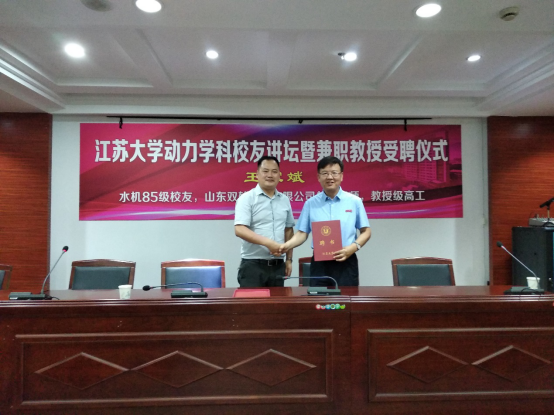 On the morning of July 4th, the appointment ceremony of Jiangsu University’s part-time professor Wang Jiabin and the symposium were held in National Research Center of Pumps. Wang Jiabin, the chief engineer of Shandong Shuanglun Co., Ltd., was employed as Jiangsu University’s part-time professor. The symposium was hosted by Zhang Jinfeng, deputy director of Research Center of Fluid Machinery Engineering and Technology.