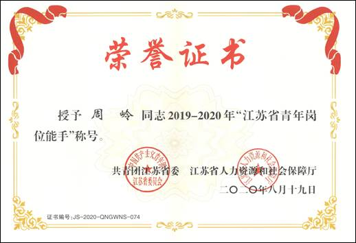 近日,共青团江苏省委、人社厅公布了“2019-2020年江苏省(杰出)青年岗位能手”入选名单,经过广泛申报、审核初评、集中答辩、送审确认、公示复核等程序,共遴选出10名江苏省杰出青年岗位能手、94名江苏省青年岗位能手,其中高校系统仅有4人入选。我校禁忌书屋 周岭副研究员荣获“江苏省青年岗位能手”荣誉称号。